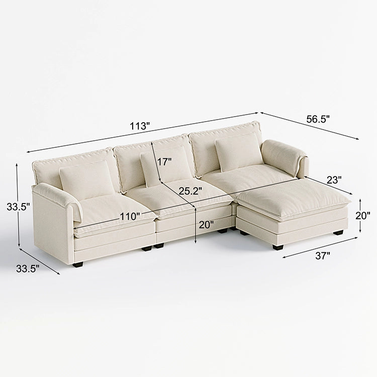 Cloud Modular 4-Piece Sofa with Ottoman (113")