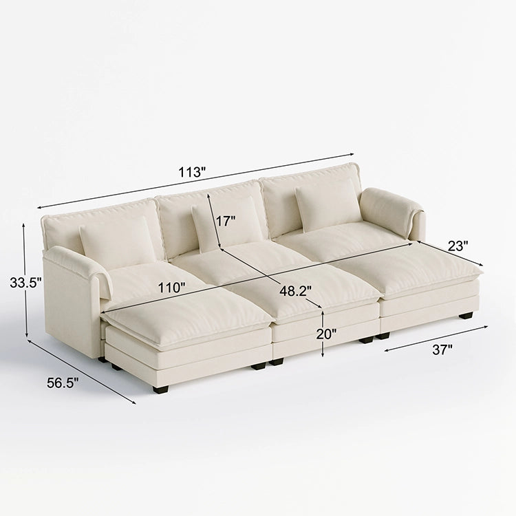 Cloud Modular 6-Piece Sofa with Ottomans (113")