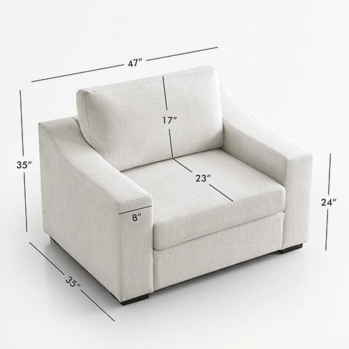 - Modern slope arms (8" wide) create a relaxed, streamlined silhouette while maximizing seating space.