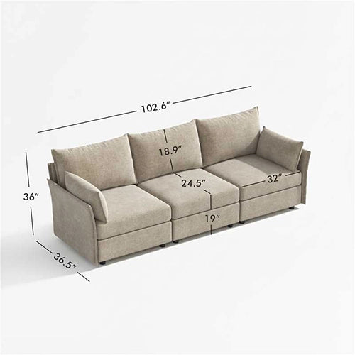 - 3 seats form a spacious 103" sofa with a streamlined silhouette