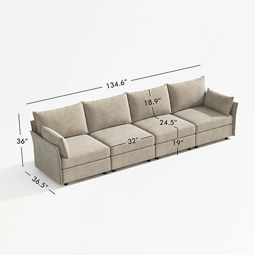 - 4 seats form a roomy 135" sofa with a clean linear silhouette