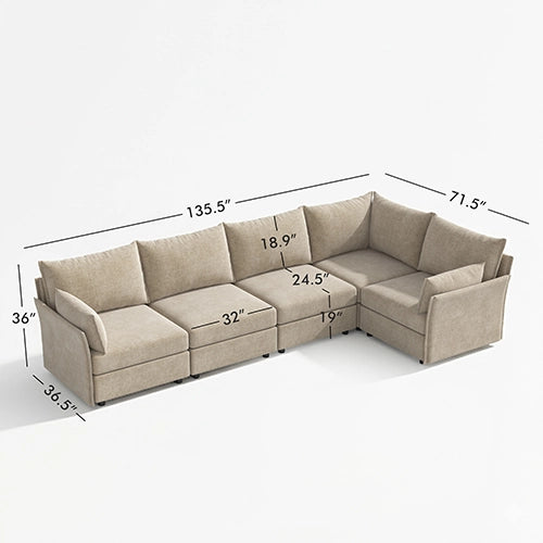 Huddle Modular 5‑Piece L‑Shaped Sectional Sofa (103–136")
