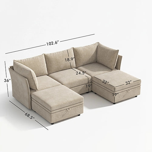 Huddle Modular 5-Piece Sofa with Ottomans (103")