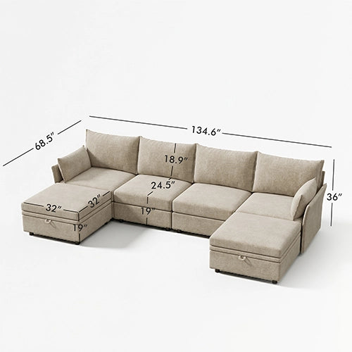 Huddle Modular 6-Piece Sofa with Ottomans (135")