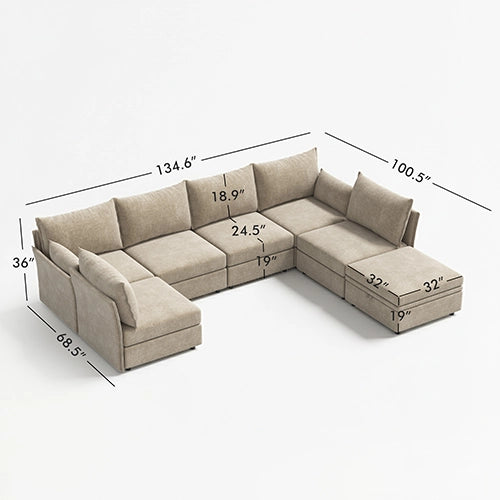 Huddle Modular 7-Piece Sofa with Ottoman (102-197")