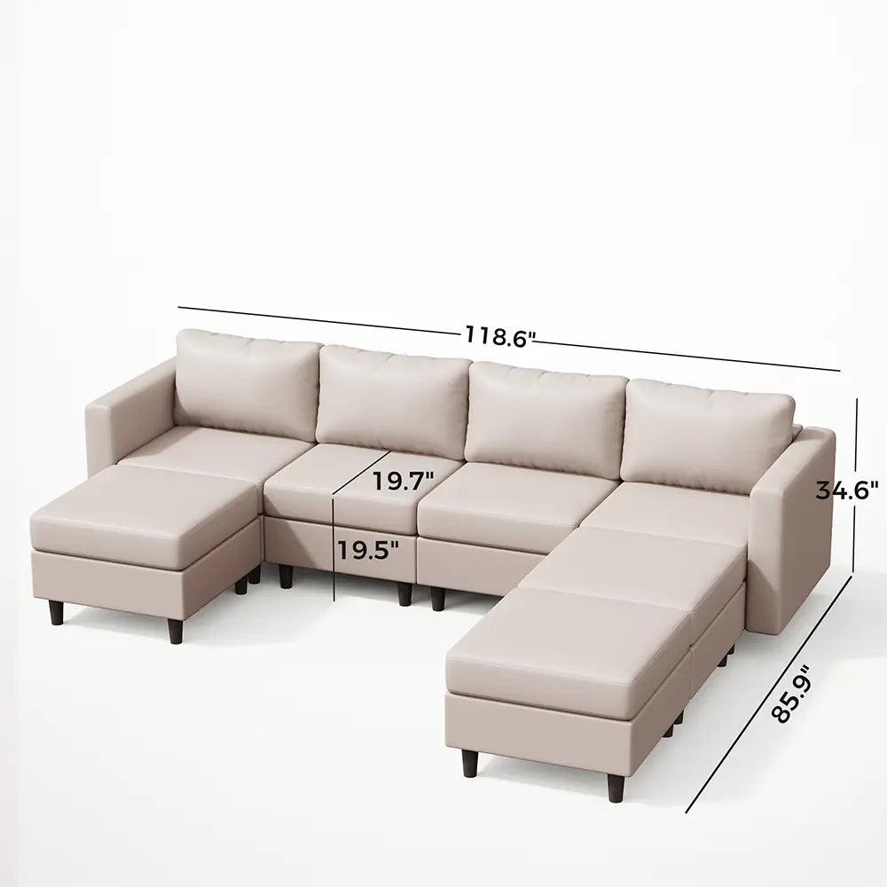 Moro Vegan Leather 4-Seat Modular Sofa with 3 Ottomans (118")